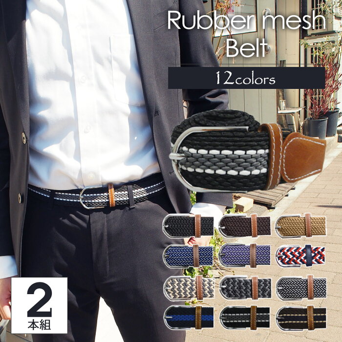 2本組 メンズ ベルト ゴムベルト伸びるメッシュゴムでしっかりホールド!メッシュゴムベルト ゴムメッシュベルト スポーツ 大きいサイズ デニム スカート ラバーベルト メンズ ゴルフ