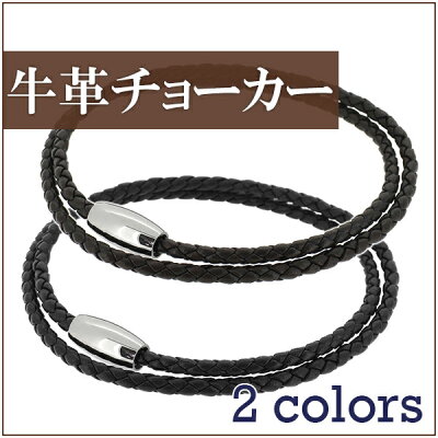 編み 牛革チョーカー 焦げ茶or黒 40cm 45cm 2.6mm 革ひも 革紐 ネックレス ネックチョーカー 天然皮革 ステンレス ブラック ダークブラウン こげ茶 レザー 皮紐 Choker メンズ レディース 男性 女性 メンズネックレス プレゼント 人気