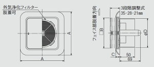 A:146mm B:102mm C:13.5mm D:98mm 材質:ABS樹脂 色:クールホワイト色 捕集効率:60%(質量法/JIS15種)。