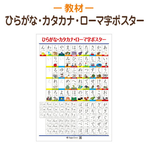 入学準備に ひらがな・カタカナ・ローマ字を同時に覚えられる人気の学習ポスター かわいいイラストがお子様の興味を引きます。
