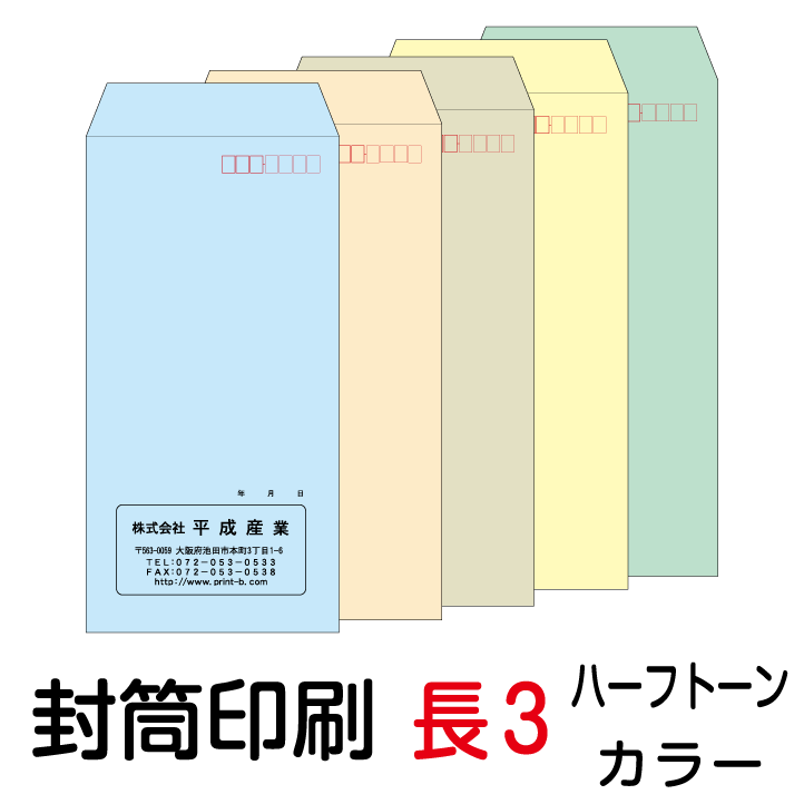 封筒 印刷 長3封筒 ハーフトーンカラー 紙厚80 封筒印刷 7000枚