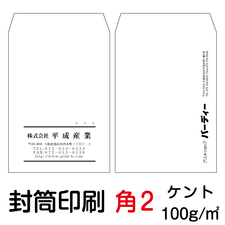 封筒 印刷 角2封筒 ケント 紙厚100 封筒印刷 3000枚